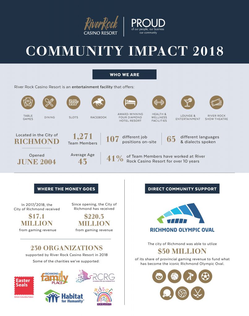 In British Columbia, approximately two-thirds of gross gaming revenue from the gaming facilities goes directly back to the government, through the BC Lottery Corporation, for the purpose of supporting programs like healthcare, education and social services. The remaining one-third of gaming revenue is retained by service providers, such as Great Canadian Entertainment, to pay for wages, building costs, taxes and other operational services.